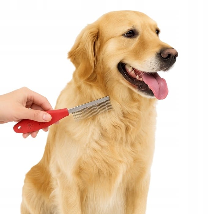Jednostronny grzebień dla psów i kotów – skutecznie usuwa martwą sierść, delikatne kołtuny i drobny podszerstek. Ergonomiczna rączka daje pewny chwyt, a zaokrąglone końcówki są łagodne dla skóry. ✨
