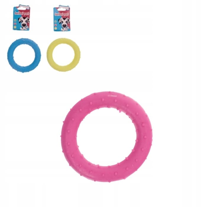 Kolorowy gryzak dla psów trzy kółka. Wykonane z wytrzymałego tworzywa termoplastycznego, niezwykle delikatnego i przyjaznego dla zębów i dziąseł.