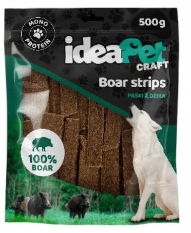 Craft Boar Strips to naturalny przysmak z dzika. Dzięki prostemu składowi i lokalnej produkcji zapewnia pełną kontrolę jakości oraz bezpieczeństwa. To produkt rzemieślniczy, opracowany z myślą o szczęściu psów i zadowoleniu ich opiekunów.