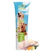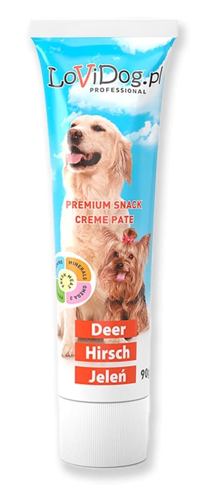 Konsystencja pasty jest idealna do stosowania w zabawkach na przysmaki – możesz wypełniać nią otwory zabawki w połączeniu z psimi ciasteczkami. Żucie zabawki i wylizywanie pasty czy wyciąganie przysmaków będzie prawdziwą frajdą dla Twojego psa.
