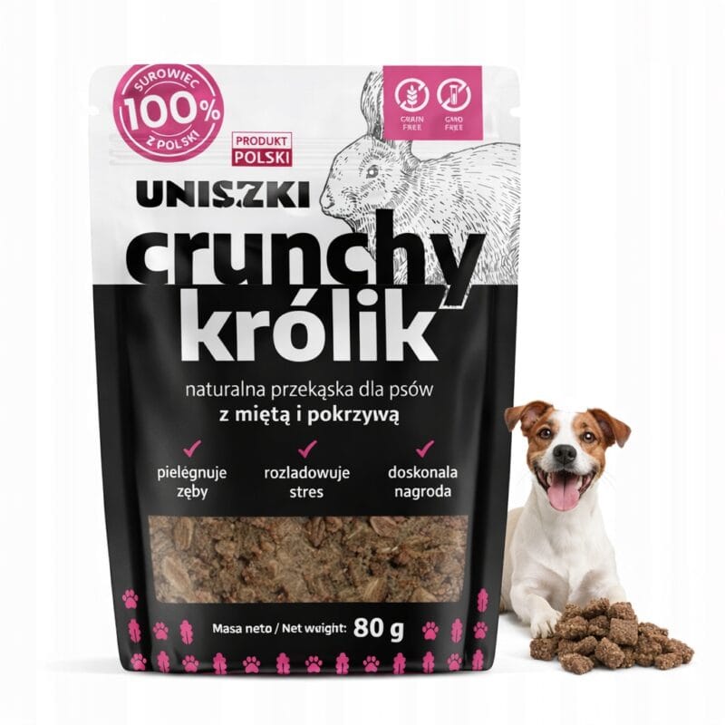 Uniszki Przysmak treserki dla psa Naturalny Crunchy Królik Mięta Pokrzywa 80g